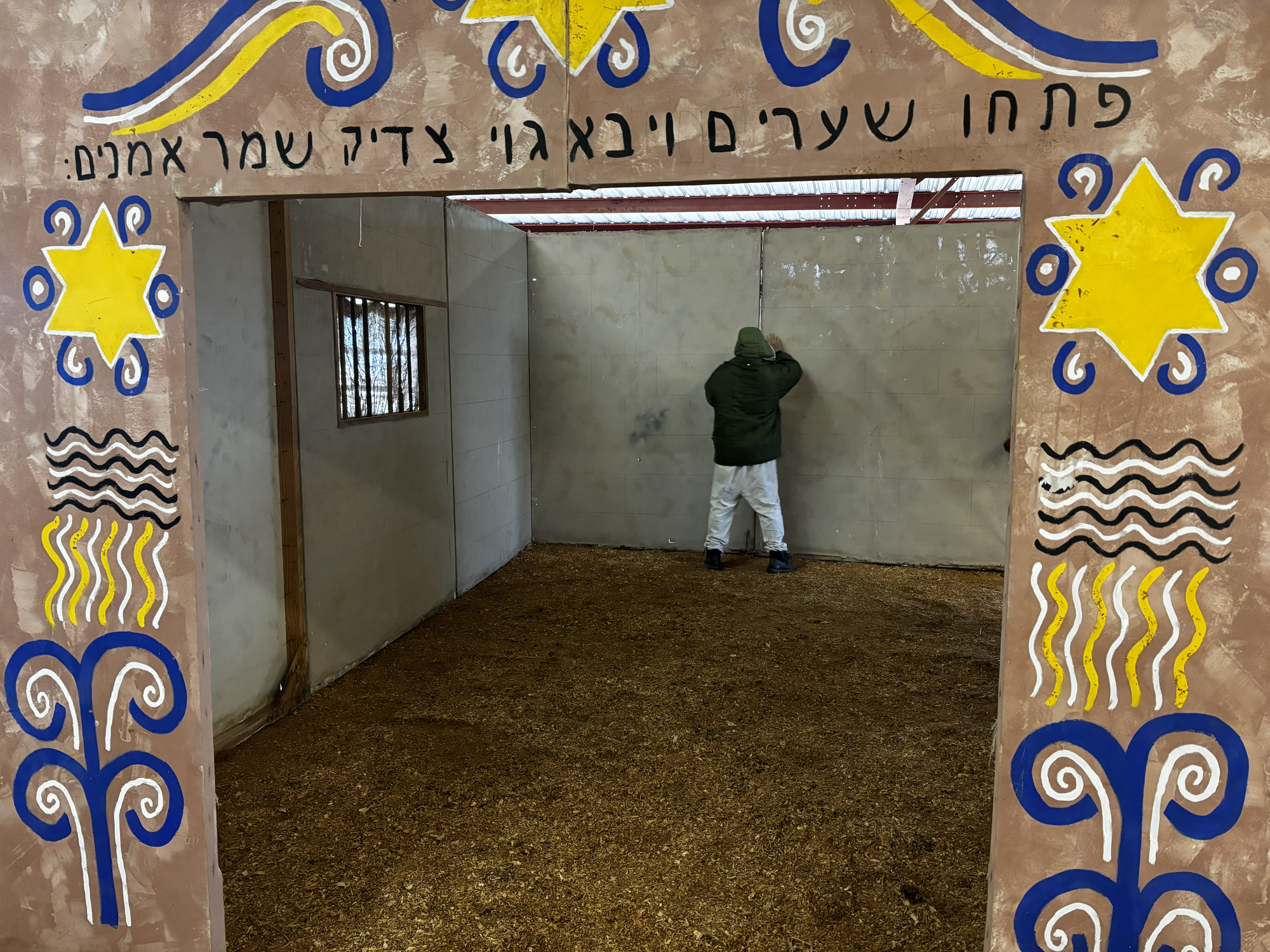 Left: A trusty from the Wynne Unit puts finishing touches on the synagogue. Right: Trusties are supervised by David Blaylock.