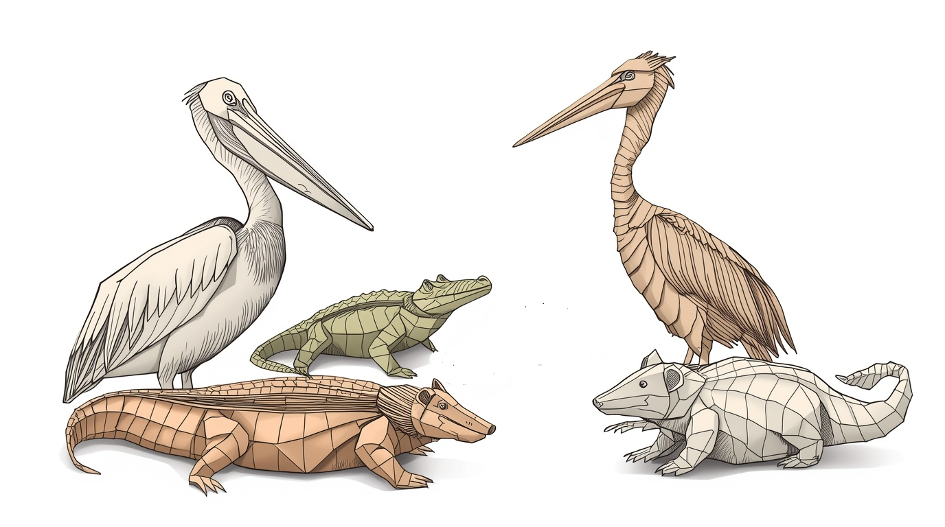 Left: one of the four letters Luna received from Huntsville High School. Right: an origami zoo featuring a pelican, a wood stork, two alligators, and a wombat. And you thought it wasn't possible.