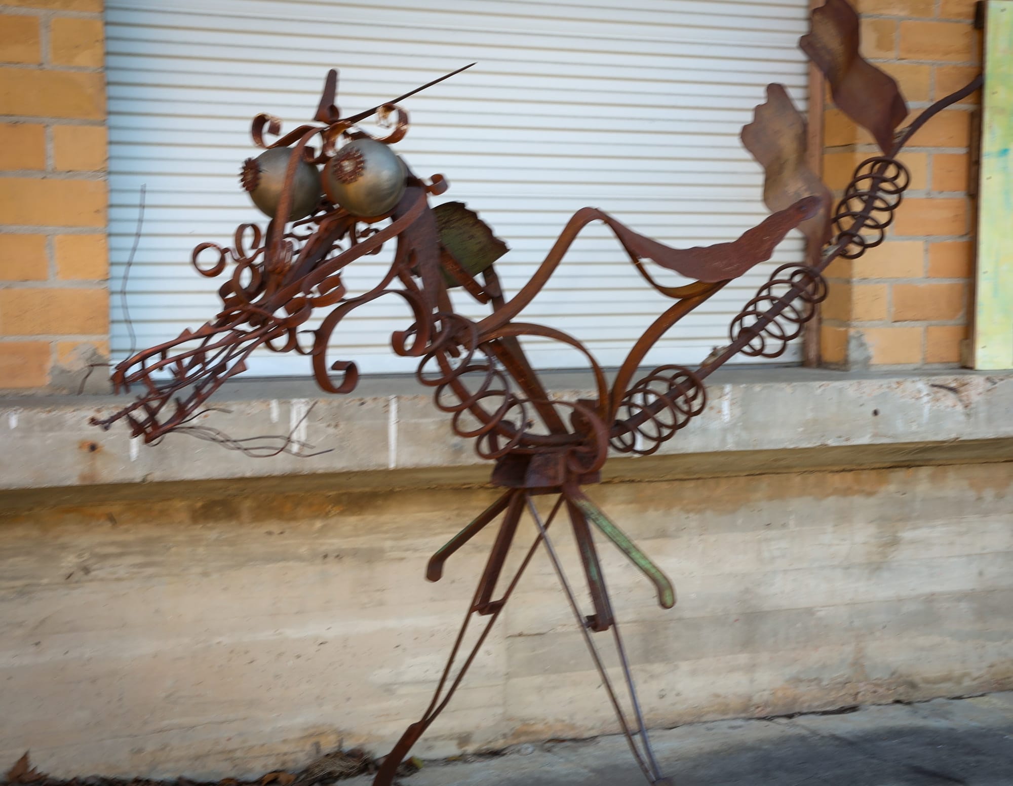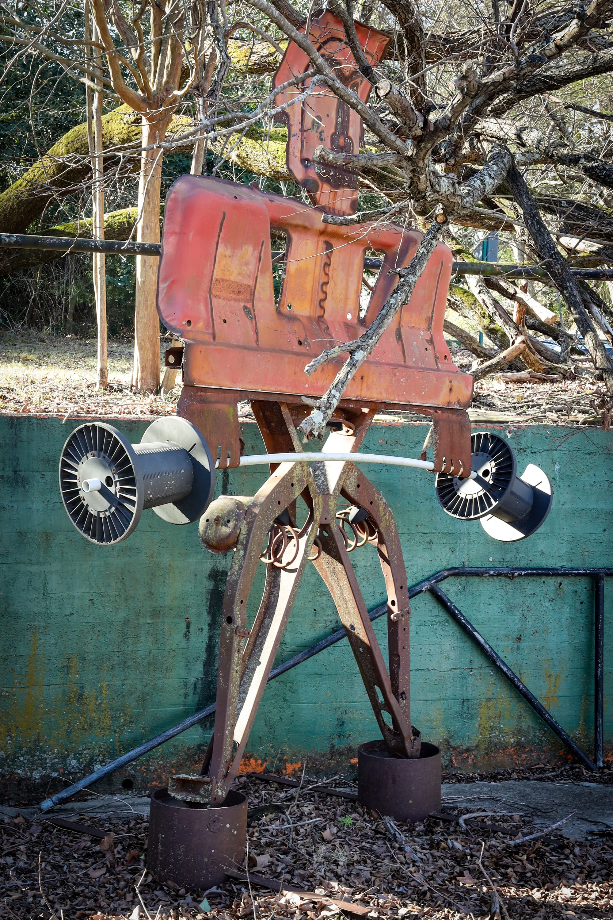 Clockwise from top left: a bullet cross, a blood-letting tub, and a metal sculpture, found in (or in front of) the Museum of Folk and Outsider Art, the Museum of Texas Art, and the Texas Furniture Museum. Photo credits: Mary-Brett Stringer (the first two photos), John Stipe (the last photo).
